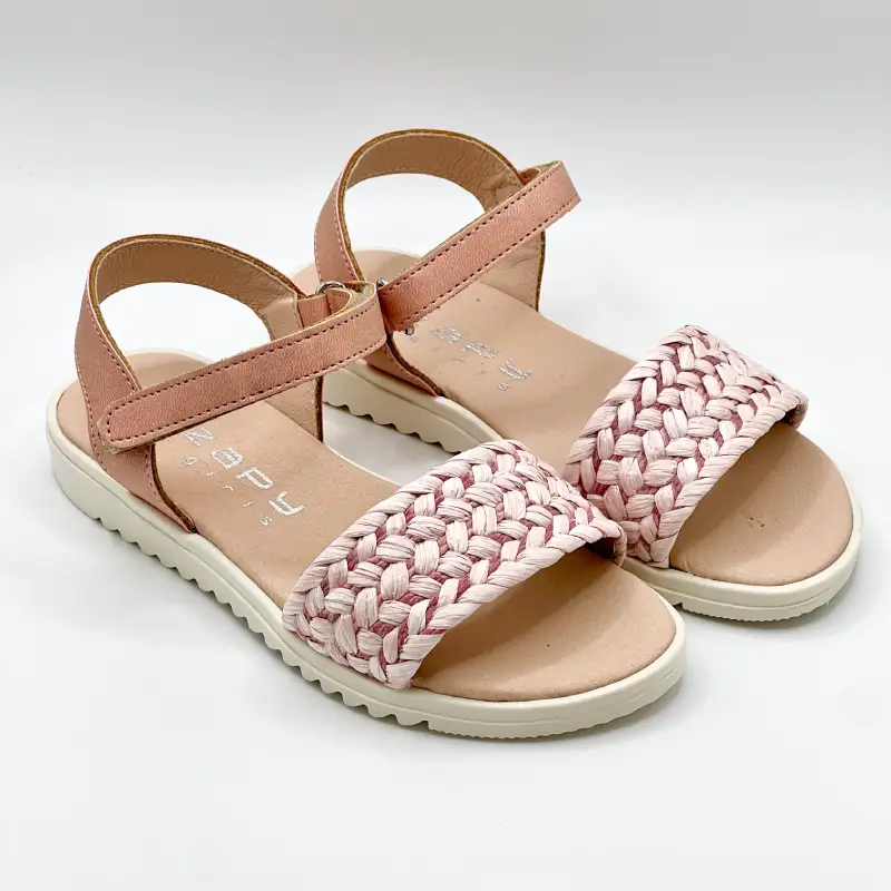 Sandalia de rafia rosa para niña.