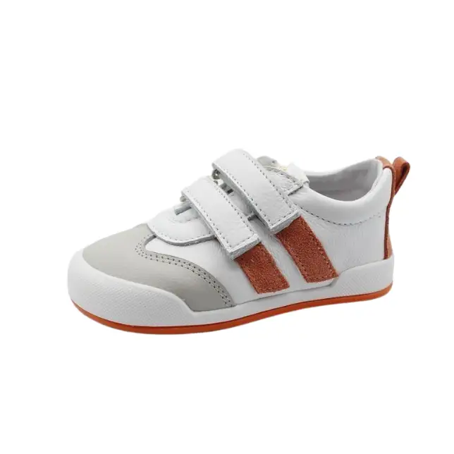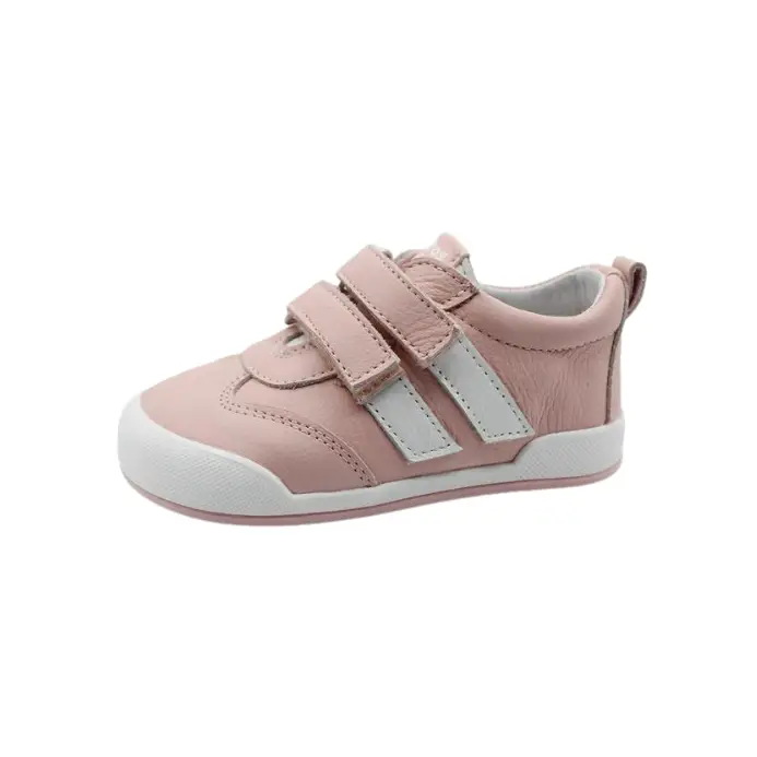 Ténis modelo Milan barefoot, da marca Blandito by Crios, disponível nas cores rosa/branco e branco/laranja. Fabricado com interior e exterior em couro. Caimento anatómico Sola plana de 3,5 mm Palmilha removível Fecho em velcro duplo